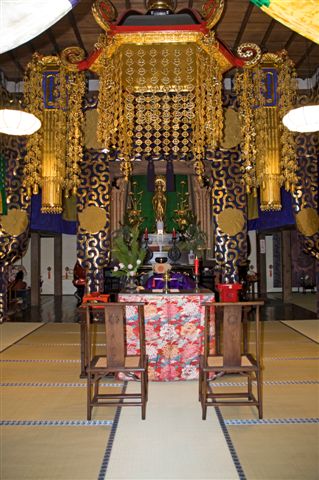 観音様の前にお花飾り。